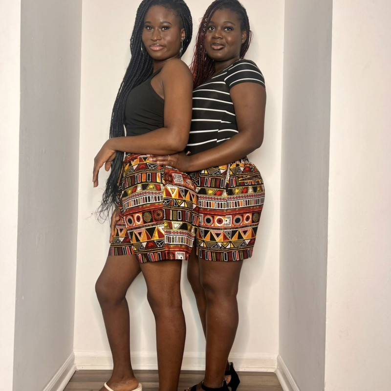 Shorts en Bogolan avec deux poches devant et deux poches arrière